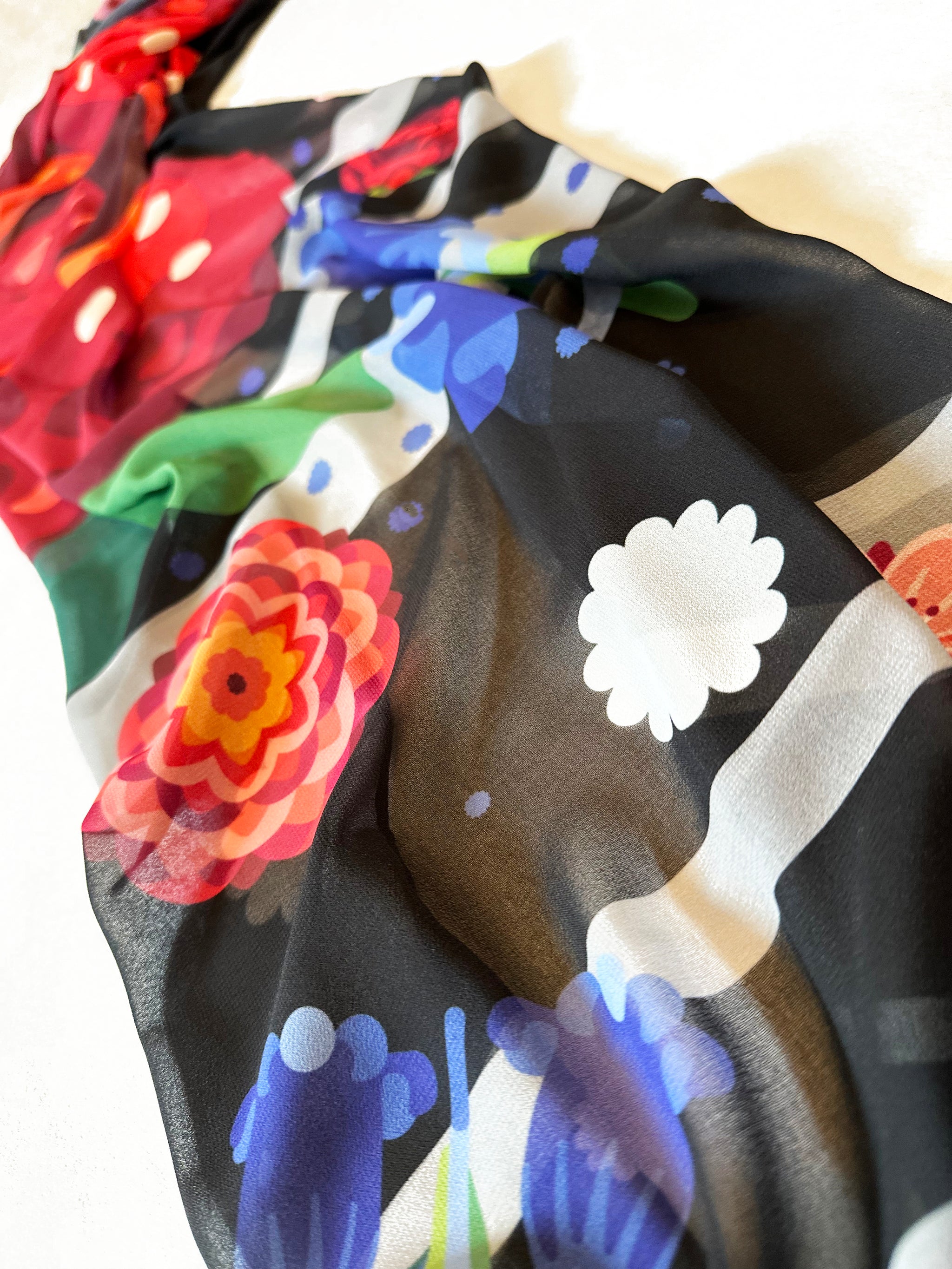 Enveloped in deep, velvety hues, Mid Night Bloom captures the allure of flowers that only blossom under moonlight. It’s mysterious, romantic, and utterly captivating—made for those who thrive in the beauty of the night. Drape it over your shoulders and step into an evening filled with possibilities.